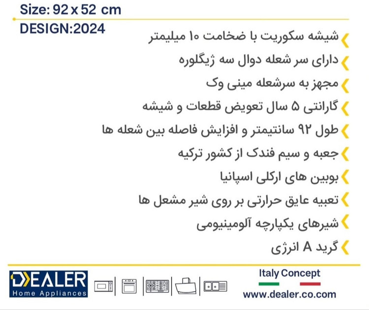 این گاز از برند معتبر دیلر تجربه ای متمایز از آشپزی در اختیار مشتریان قرار داده است . بزرگ ترین وجه تمایز این برند با دیگر برند ها گارانتی پنج ساله محصول است که سه سال از مابقی برند ها گارانتی بیشتری دارد.