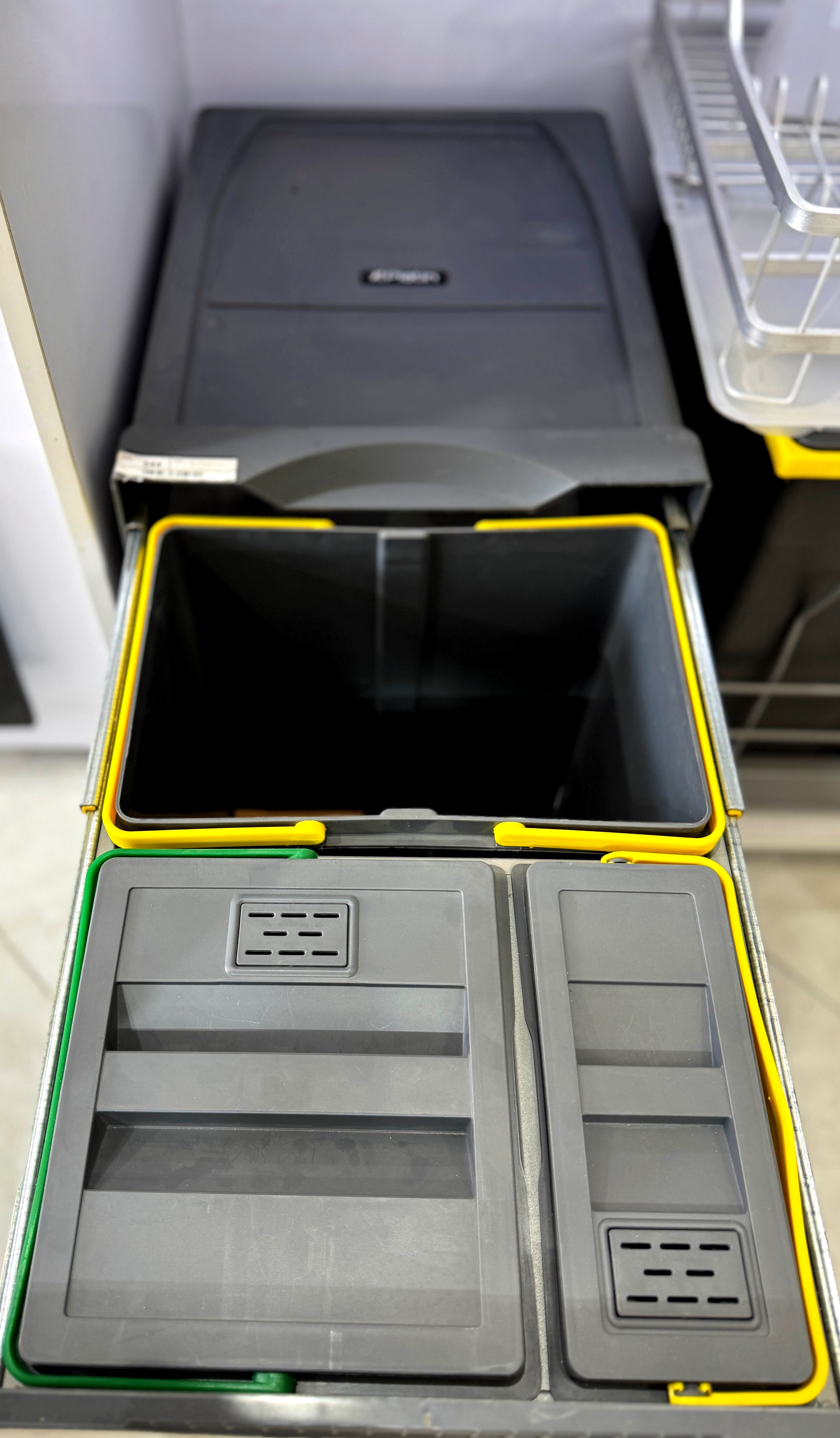 سطل زباله سه مخزنه ریلی کابینت با درب فیلتر دار PLOTON